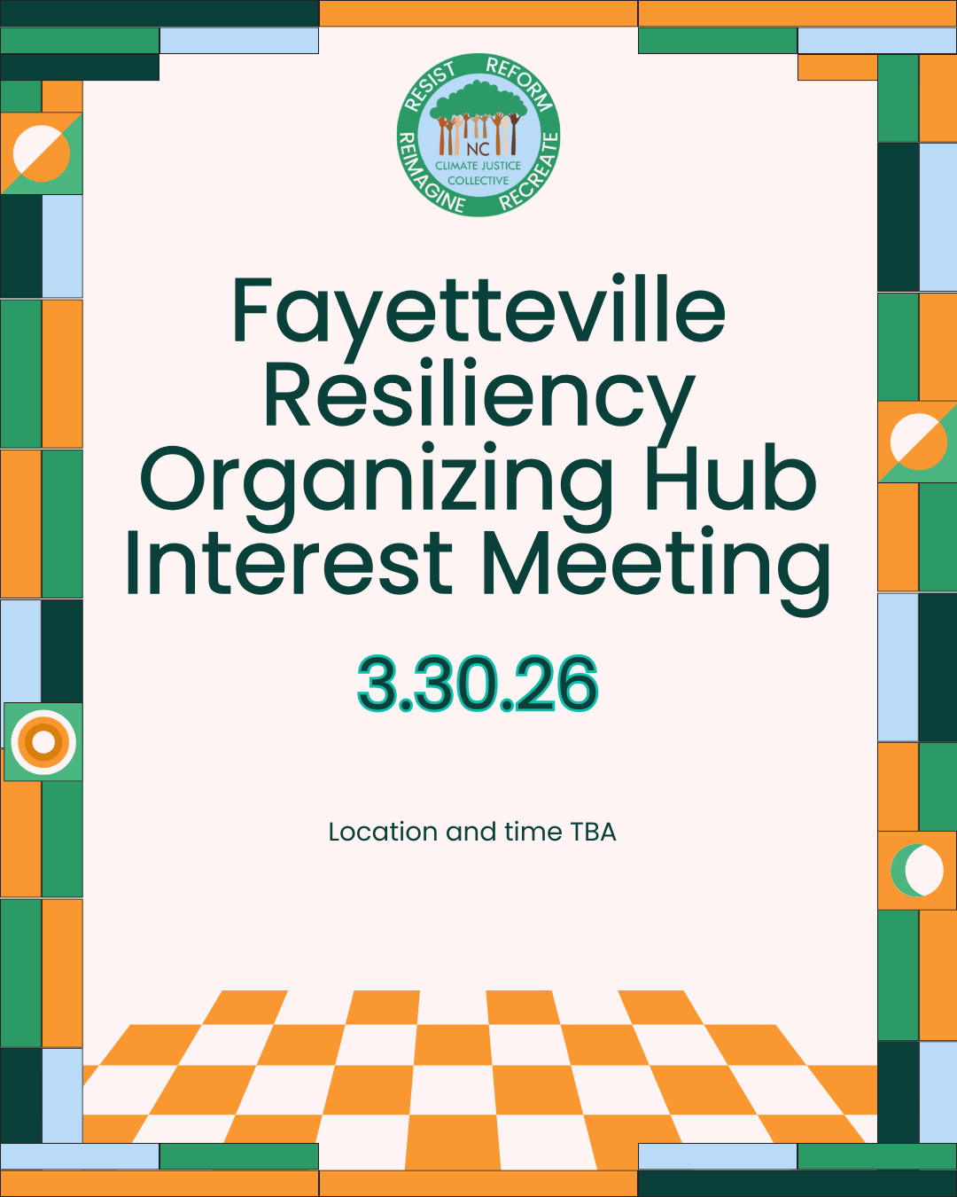 Fayetteville Resiliency Organizing Hub interest meeting Mar 30 Written By Ellis Katz Location and time TBA Ellis Katz